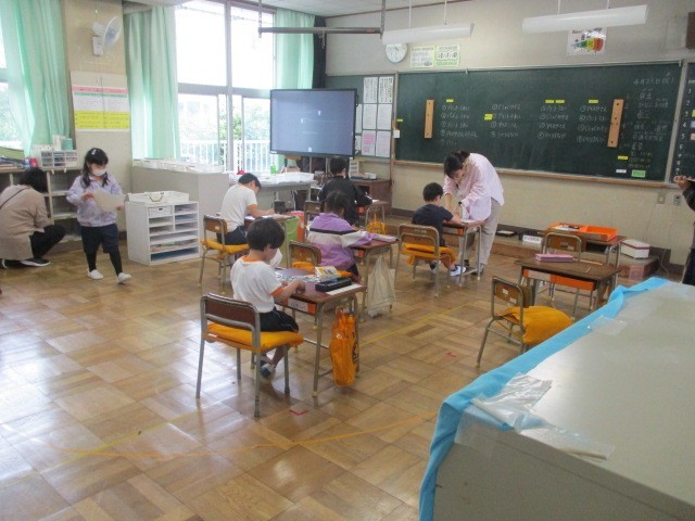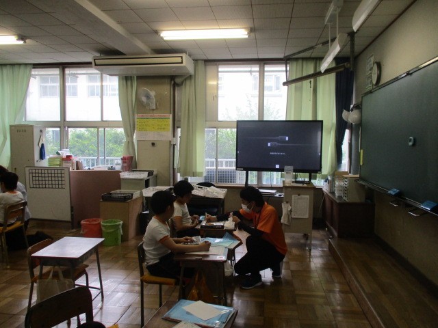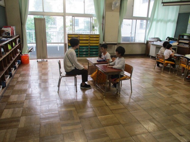 3時間目の授業です。小さなグループに分かれて答えを考えたり、一斉に話を聞いたり、学習を進めていました。