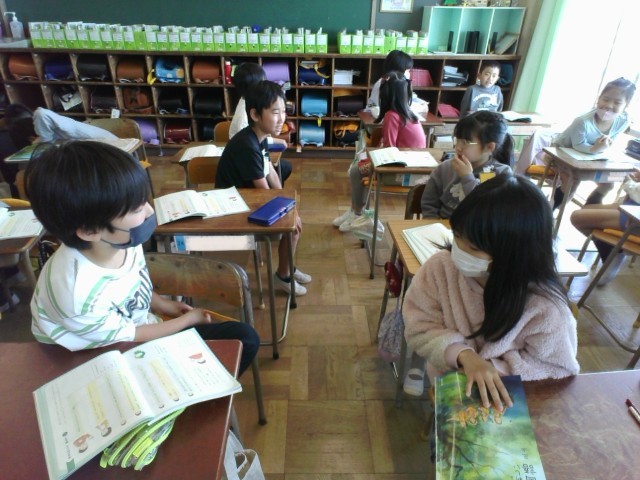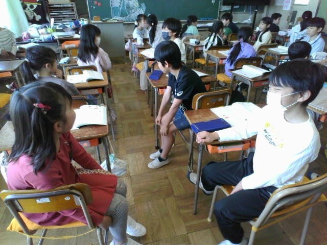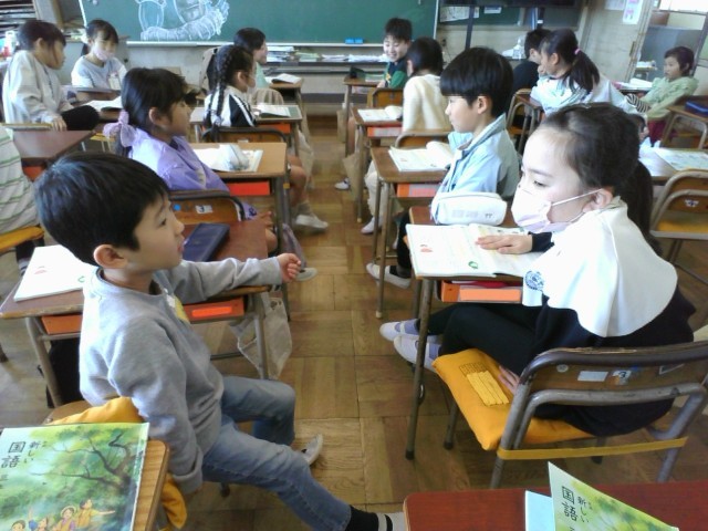 国語「あなたのこと,教えて」の学習で,となりの席の友達に質問をしました。