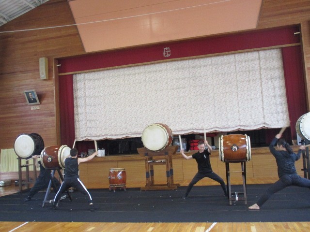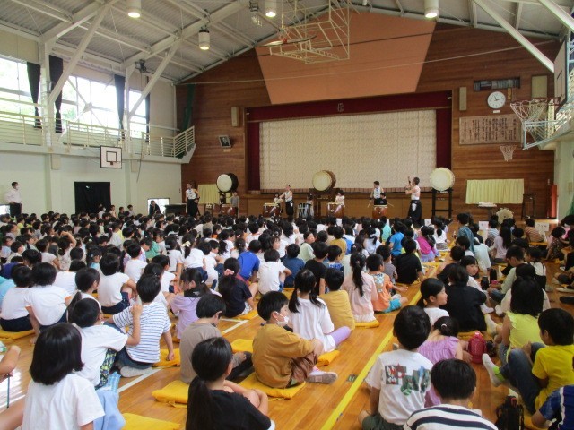 体育館はかけ声をかけたり、みんなで太鼓の演舞を楽しんでいました。