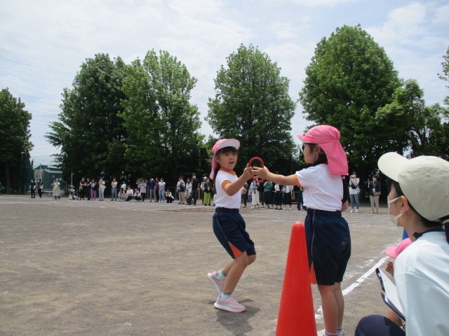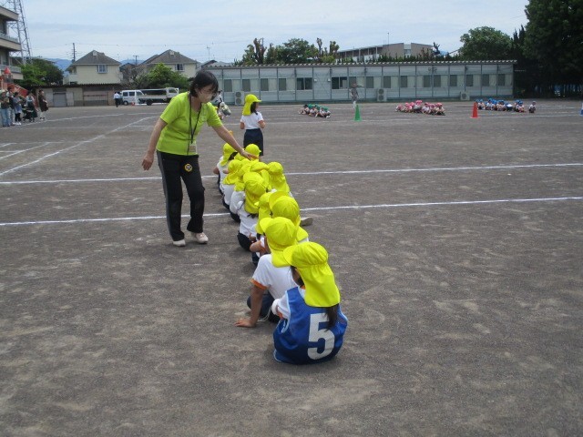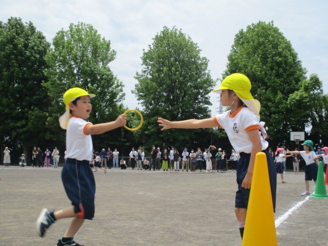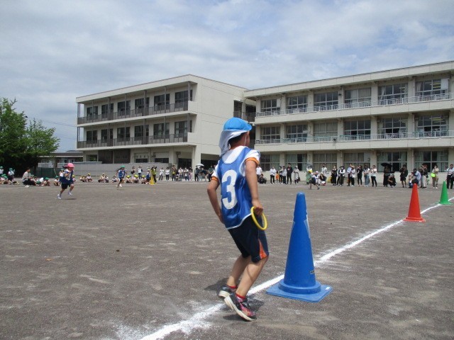 1年生の学年リレーです。クラスをAとBで分けて、合計のタイムで順位をつけました。1位は4組さん、2位は2組さん、3位は1組さん3組さん同タイムでした。みんな他のクラスの順位を聞くときも拍手ができていて素敵でした。