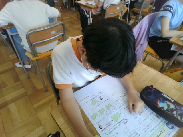 6年生の算数の授業の様子です。「文字と式」の単元のまとめテストを行っています。