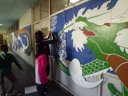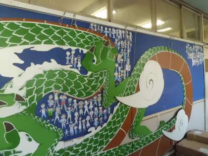 その龍の間に、全校児童の全身像の絵を貼ります。