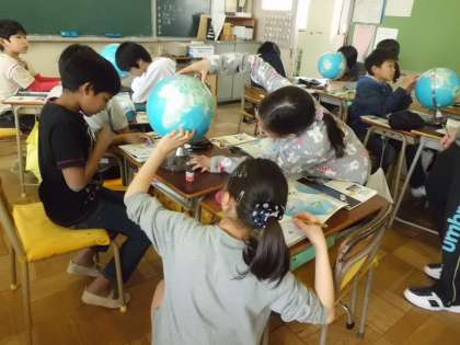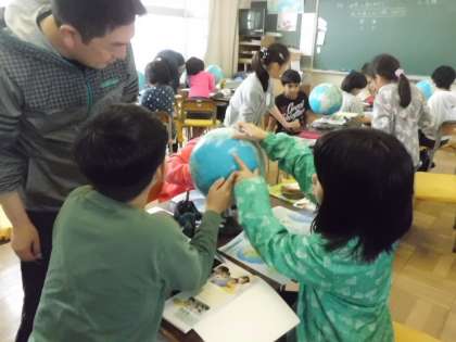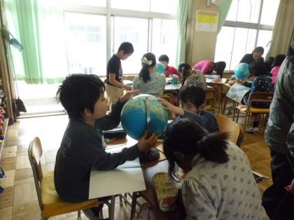 初めて地球儀を見る子もいて、なかなか