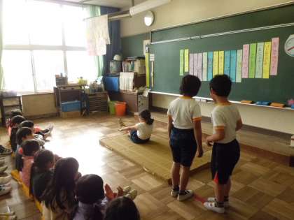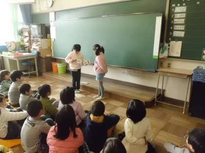 1年生は、各クラスで学習発表会を