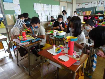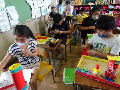 4年生が図工の時間に制作している「コロコロガーレ」がもう少しで完成します。