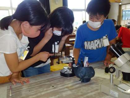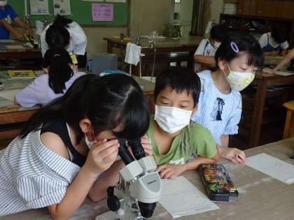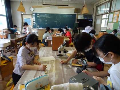 5年生は、理科の時間に、メダカの卵を観察しました。