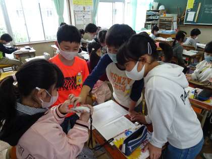 日なたと日かげの温度の違いを、放射温度計を使って調べました。