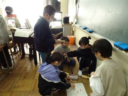 グループで、打楽器のリズム打ちの曲を作りました。