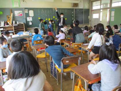 1学期の係を決めています。決まった係は、協力して係カードを作っていました。