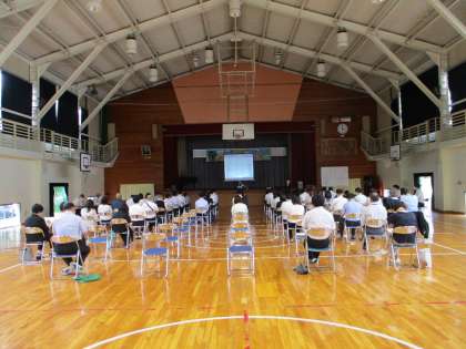 門池中学校の先生方が来校し、授業参観した後に、人権教育についての合同研修会を行いました。講師の講演を聴いた後、「人権意識」をテーマに、グループワークを行いました。