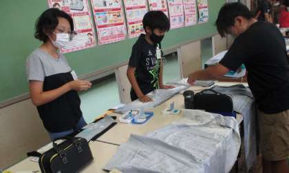 三つ折りにした部分にアイロンをかけるときには、手順を確認したり、布を折るときにおさえてあげたりと友達同士で協力しあいながら活動していました。