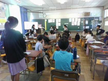 4年生の英語の授業の様子です。友達のお気に入りの文房具を予想して、英語を使ってたずねています。