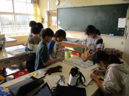 ランチョンマット作りが完成に近づいてきました。アイロンを使って飾りのフェルトを付けています。