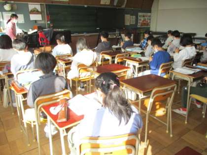 「冬げしき」をリコーダーで演奏しようとがんばっています。先生のピアノに合わせて指づかいに気を付けながら練習しています。