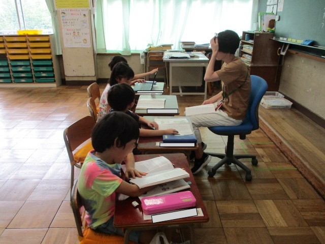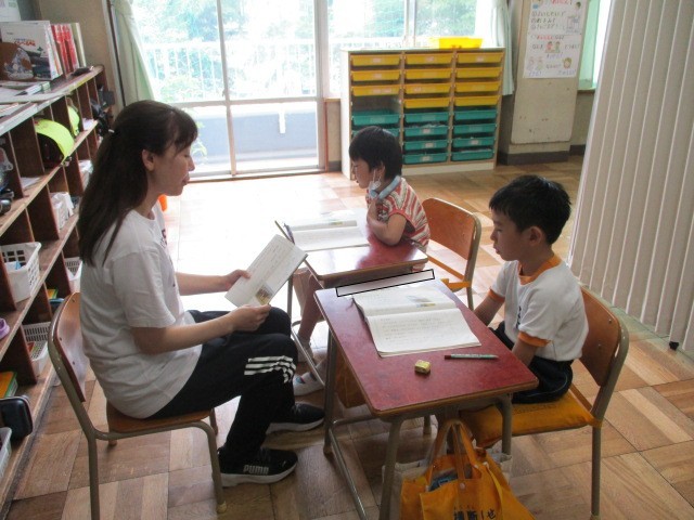 教科書の文章を、声に出して正しく読むことができるように、先生と確認しながら読み進めています。