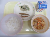 今日の給食は、ごはん 牛乳 とりにくのからあげ れんこんのきんぴら しんじゃがとわかめのみそ汁 でした。