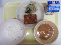 今日の献立は、米飯 牛乳 太刀魚の竜田揚げ もやしの土佐酢あえ さつま汁 です。...
