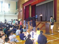 終業式の後、交通安全協会の交通安全指導員さんから夏休みの安全な生活についてのお...