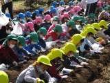1年生もサツマイモ掘りをさせていただきました。 始めに挨拶をして、説明をしっかり...