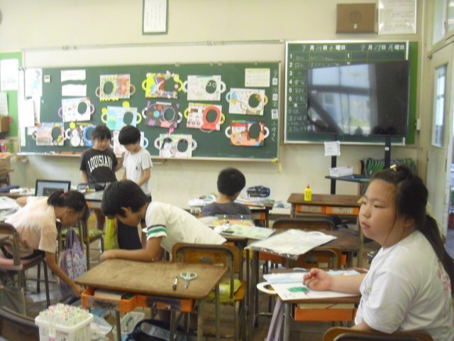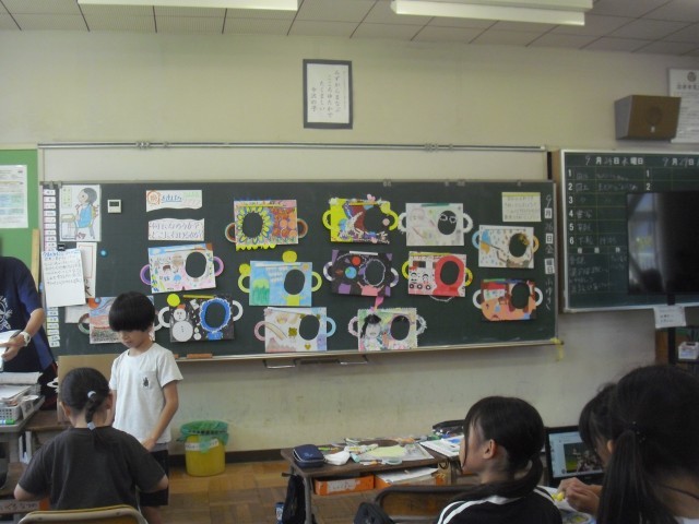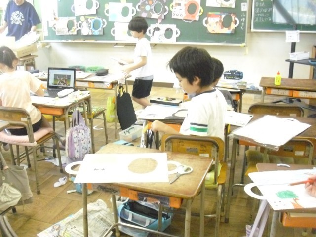 図工の授業です。顔出しパネルが完成に近づきつつあります。みんな上手にできました。