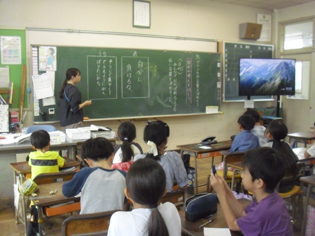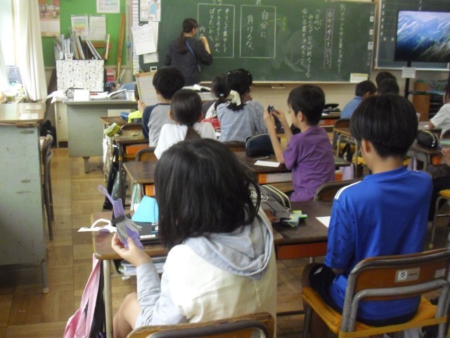 国語の授業です。グループでの話し合いの方法を考えてます。まず、根拠を元に自分の考えをもつことが大切です。