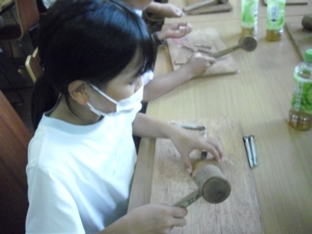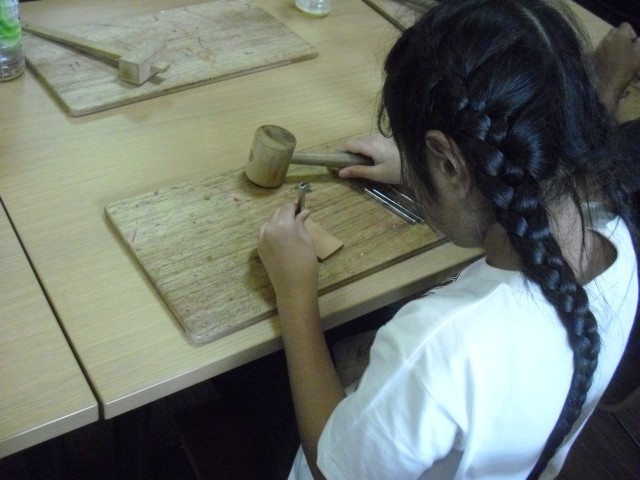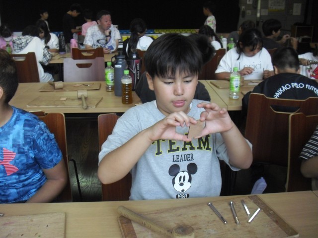 入所後は二手に分かれて活動します。まず1組が革細工のクラフト作成です。