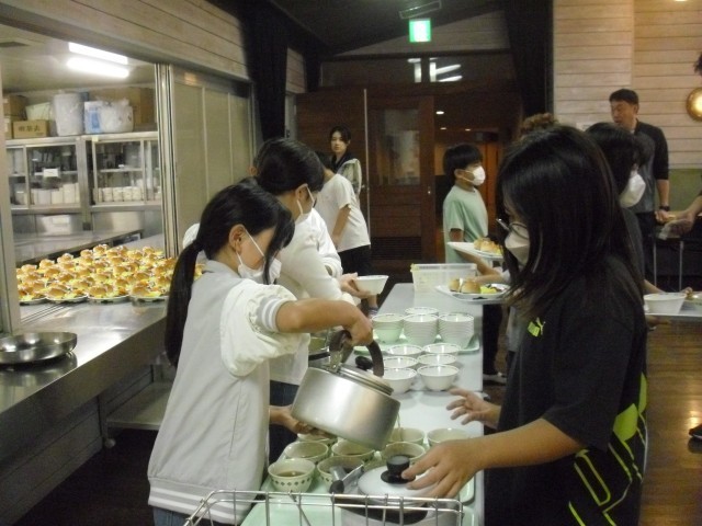 朝食の準備です。今日の朝食はパンです。