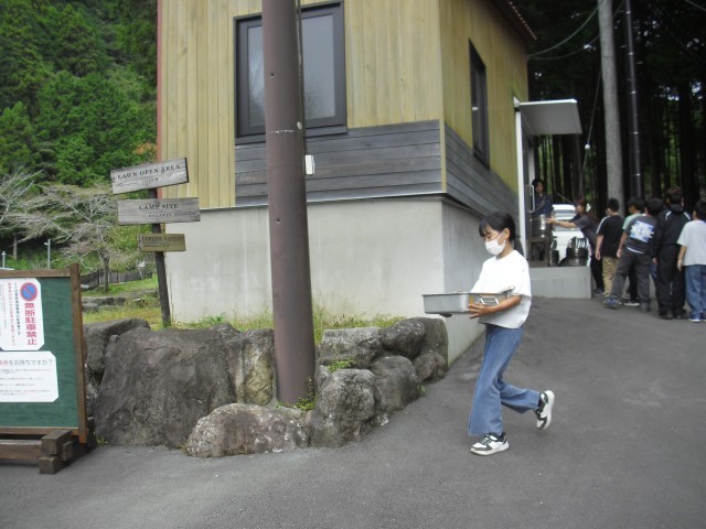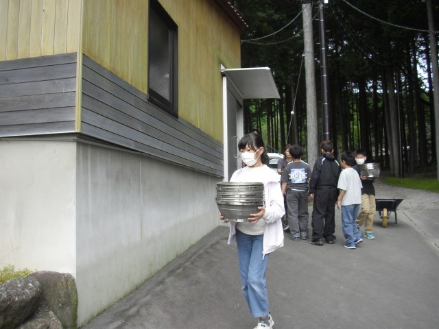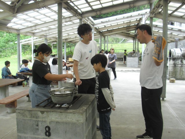 飯盒炊飯の準備です。かまどに火をつけようとしています。うまく着火できるでしょうか。