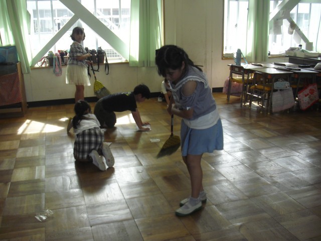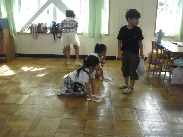 ペア遊びの後は、掃除の時間です。切り替え素早く掃除に取りかかっています。