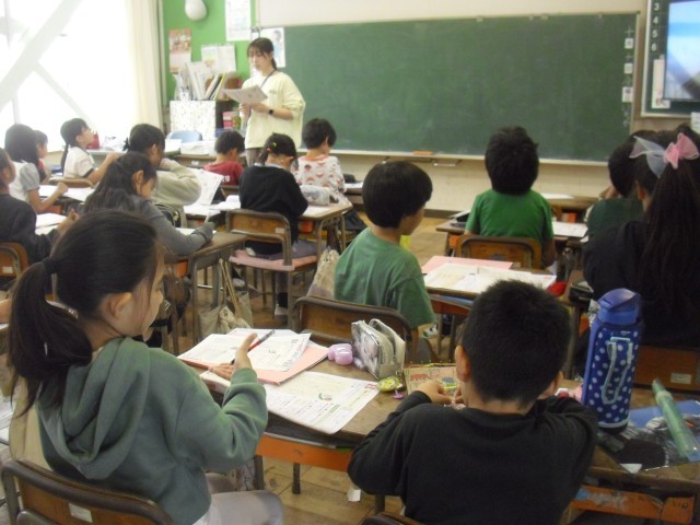 国語の授業です。テストを返しています。どこが間違ったのか、しっかり振り返ってほしいと思います。