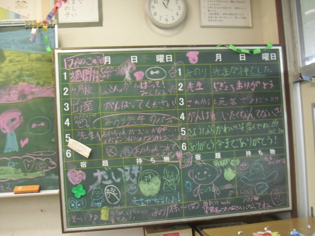 担任の先生が来週から産育休に入るので、お別れ会を行っています。子供たちからの心温まるメッセージに感動しました。