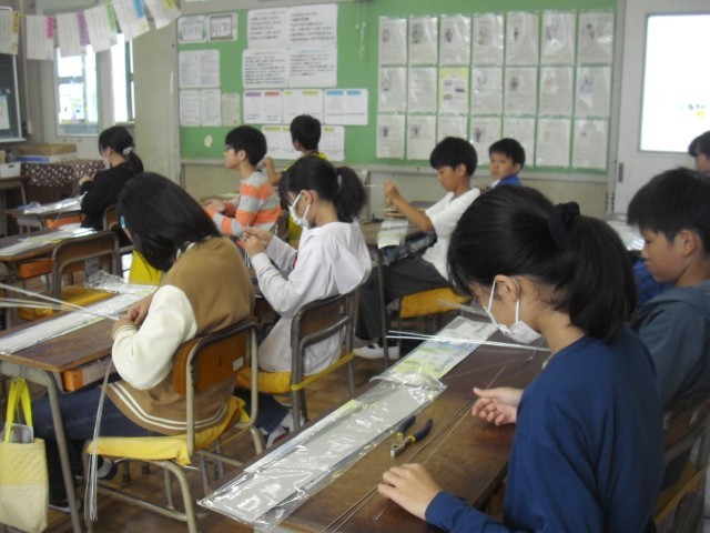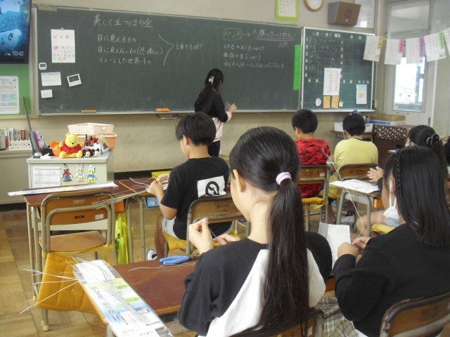 図工の授業です。針金使って立体的な作品をつくっています。3種類の針金を上手に使ってどんなものができるでしょうか。楽しみですね。