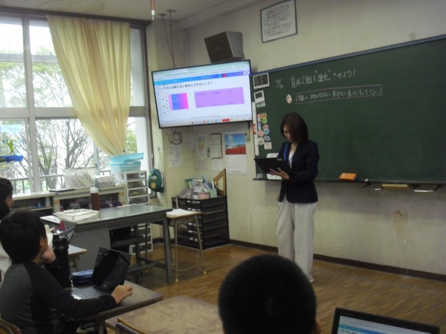 育成の授業です。クラスの人のよいところの紹介をしています。優しい人が多いという意見が多かったです。