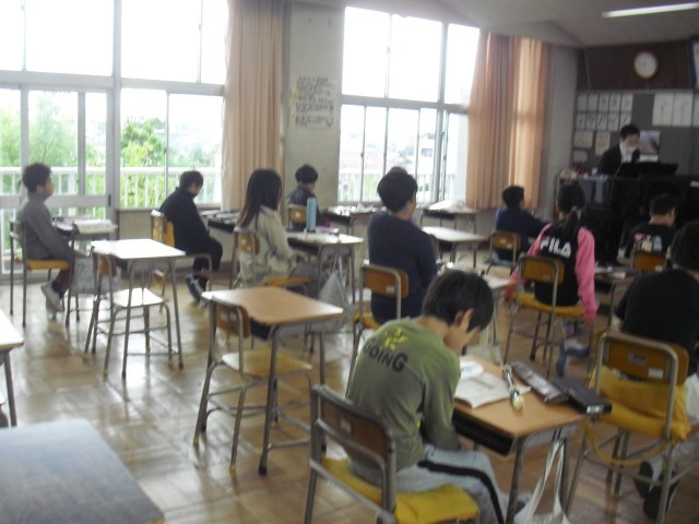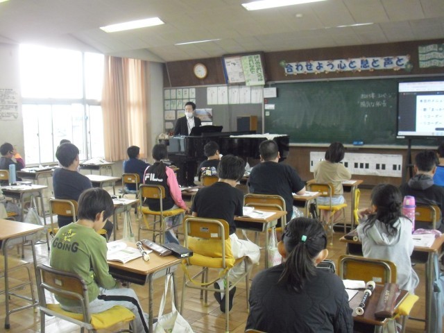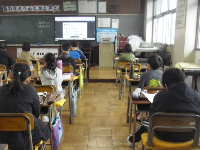 音楽の授業です。旋律の重なりに注意しながらリコーダーを演奏しています。みんな素敵な音色で上手です。