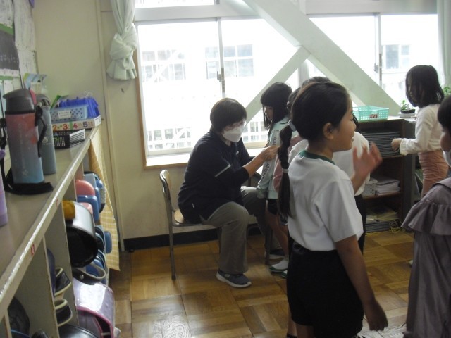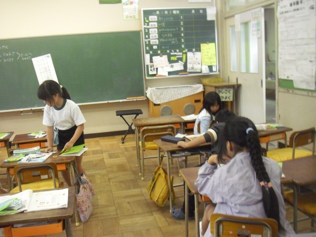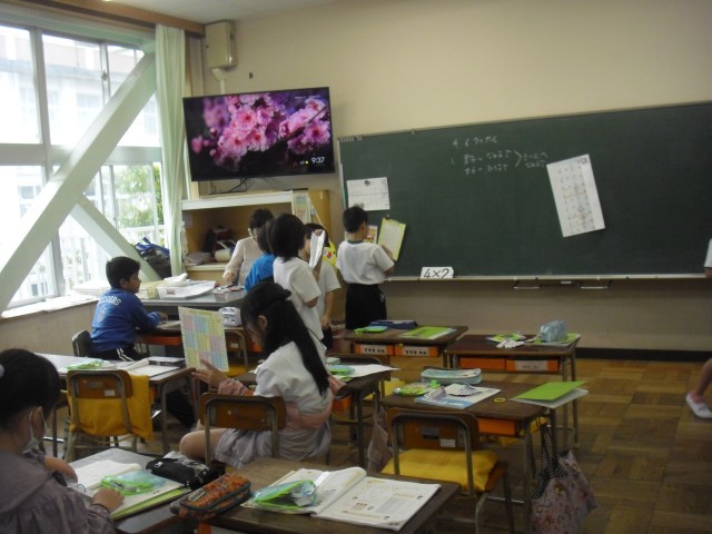 算数の授業です。かけ算九九の暗証テストをしています。しっかり覚えてほしいです。