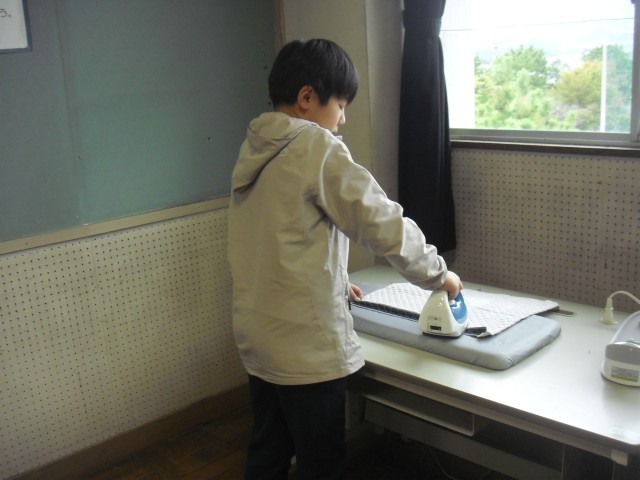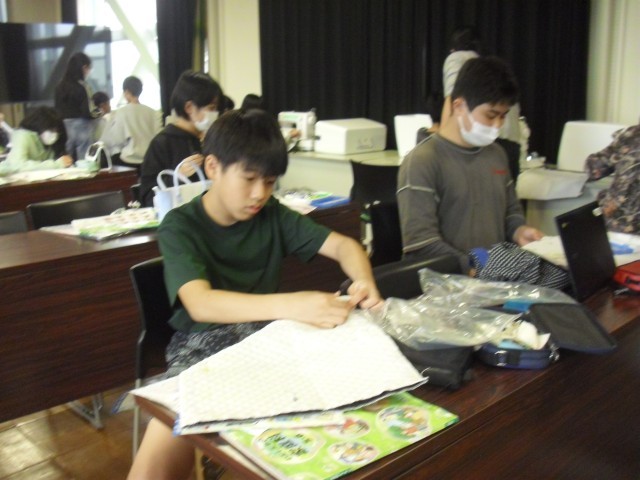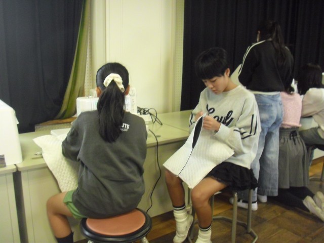 家庭科の授業です。ナップサック作りを行っています。みんなミシンの使い方が上手になってきました。ただドラブルがあると子供だけでは対応できないのがつらいです。