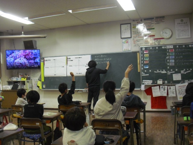 学活の授業です。10月の反省をしています。月末にこの1ヶ月を振り返り、来月にはどんな姿になっていたいかをクラス全体で共有しています。子供たちは自分の成長を実感しています。