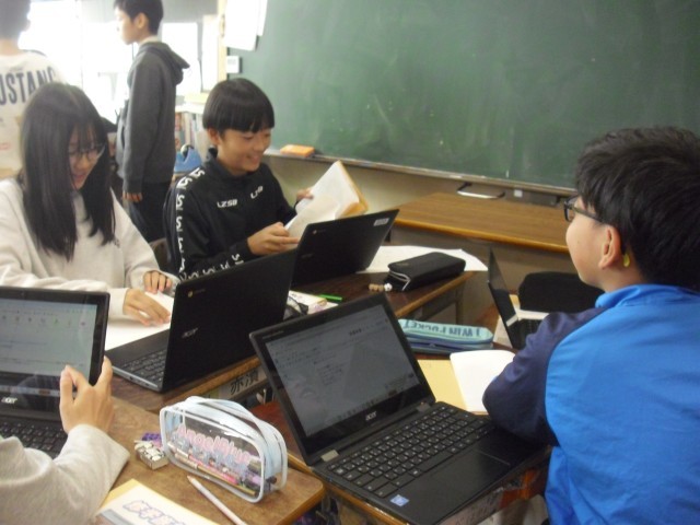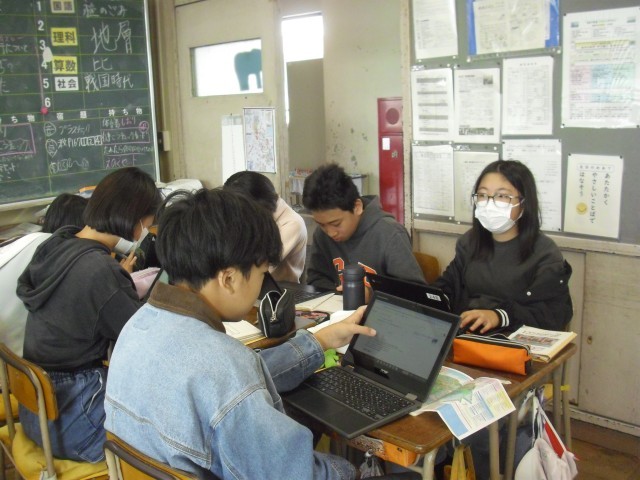 学活の授業です。修学旅行の班別行動の計画を立てています。どんな計画になるか楽しみですね。