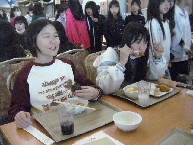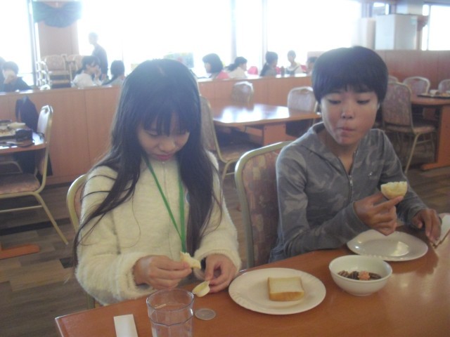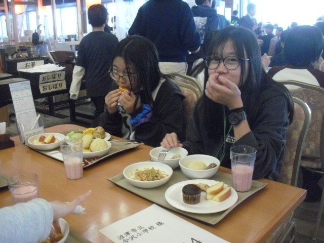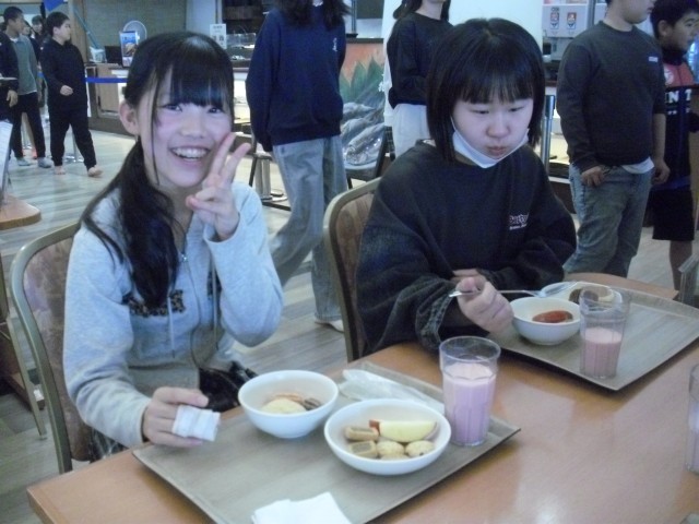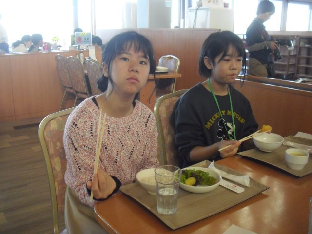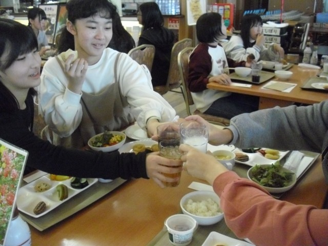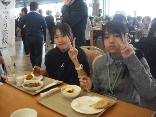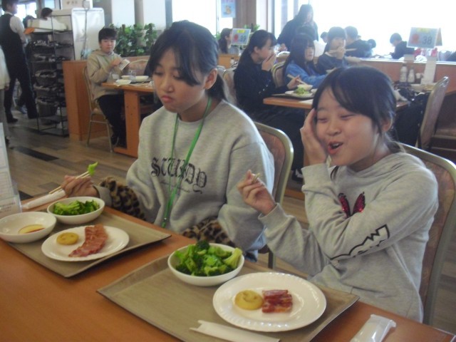 修学旅行2日目の朝です。朝食をしっかり食べて、次の研修場所へ向かいます。