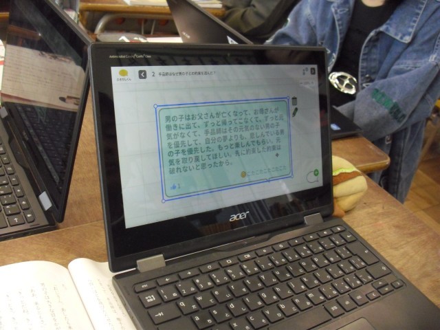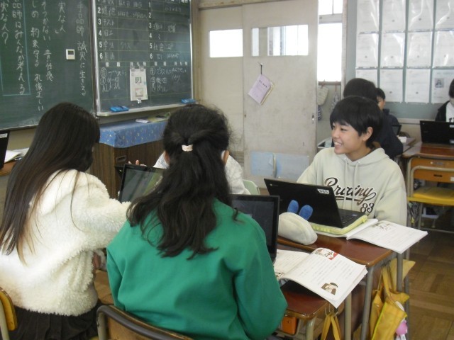 道徳の授業です。「手品師」という題材を使って、「誠実」とは何か考えています。手品師が選んだ行動についてほとんどの子供が賛成していました。その理由は、「誰一人悲しむことがないから」という意見が多かったです。子供たちの優しさがにじみ出た授業でした。