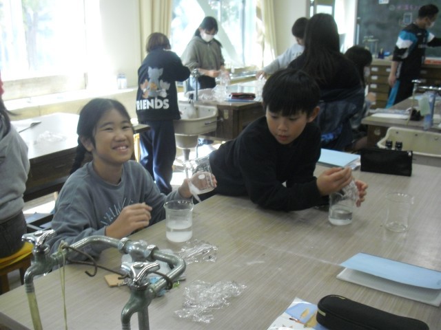 理科の授業です。溶かすものの量を増やすにはどうしたらよいか考えています。仮説として「水の量を増やす」、「水温を上げる」などの意見が出されていました。