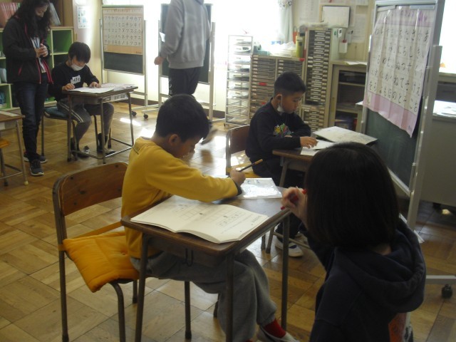 育成の授業です。インフルエンザが流行していますが、登校している子供たちは元気です。学習に集中して取り組んでいます。