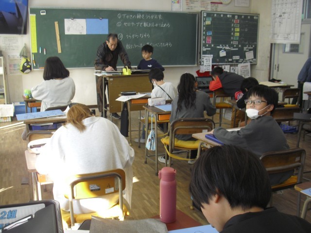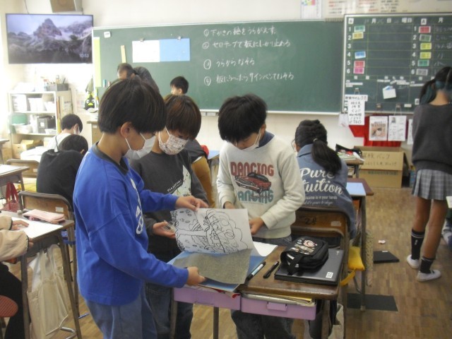 図工の授業です。版画の作成に取りかかっています。今日は題材を決めていました。どんな版画になるか楽しみです。
