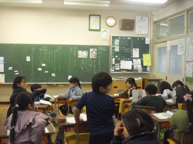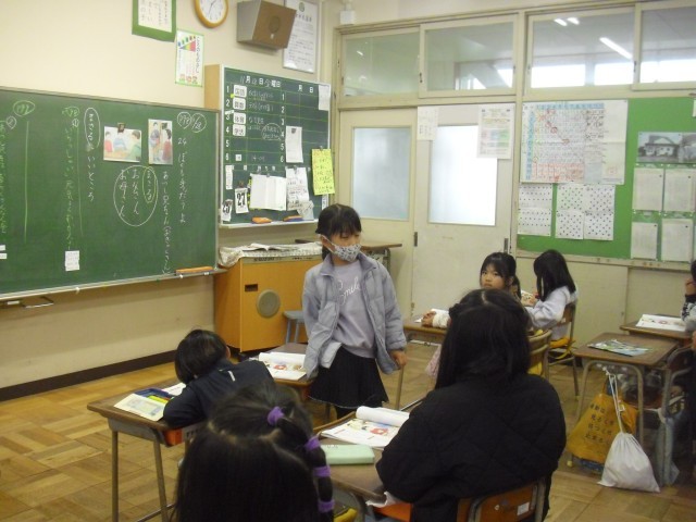 道徳の授業です。主人公が優しいと思われる場面を発表しています。どの子も理由をつけながら自分の言葉で話すことができていました。