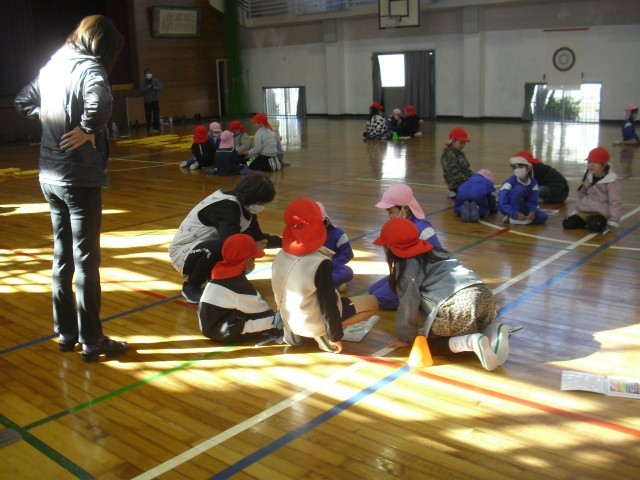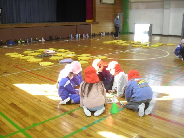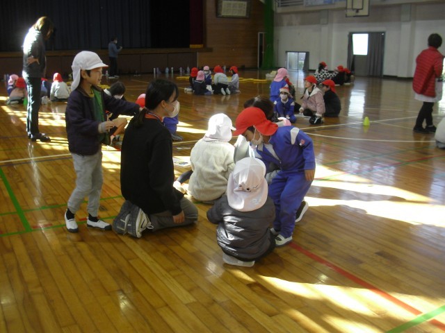 幼稚園との交流会が行われました。この日のために1年生は一生懸命準備してきました。幼稚園児に優しく接しています。