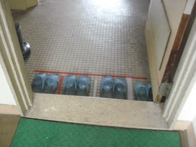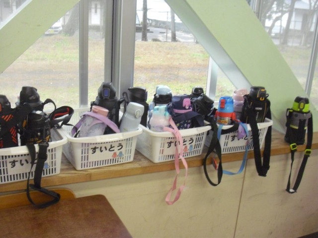 トイレのスリッパや水筒など、いつもしっかり整理整頓されています。今沢小は、校舎は古いですが、管理がしっかりしていてとても気持ちいいです。