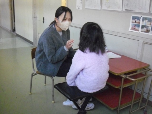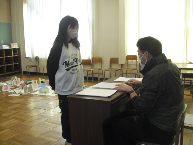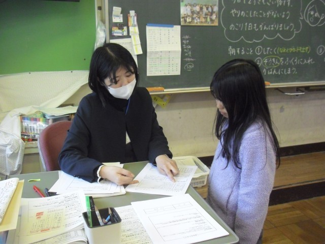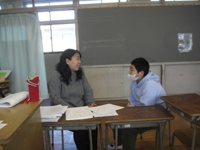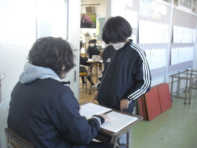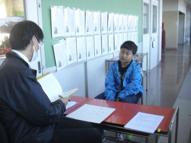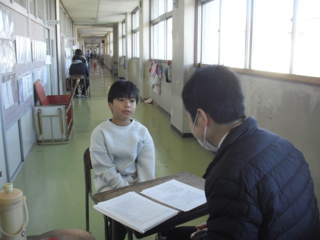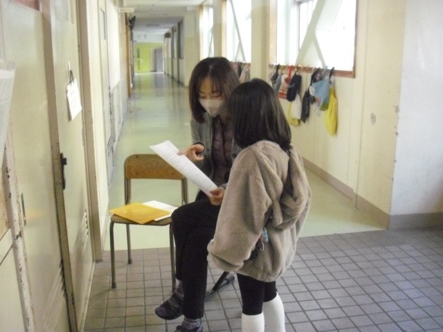 担任から一人一人通知表を渡されています。その中で、2学期成長したところを担任と確認していました。みんな頑張った2学期でした。