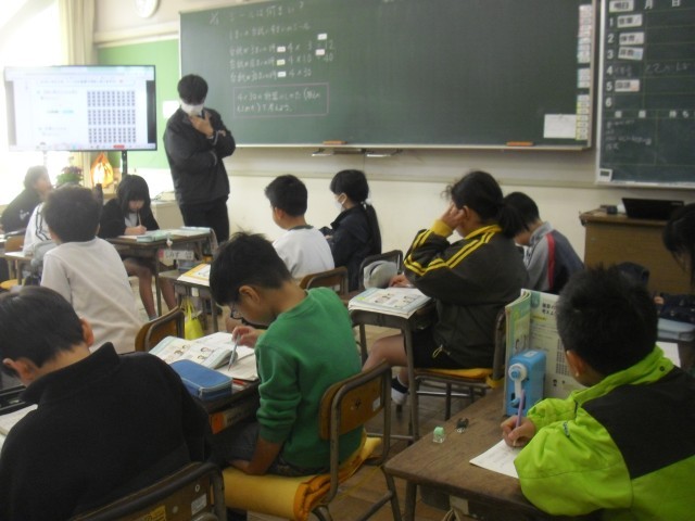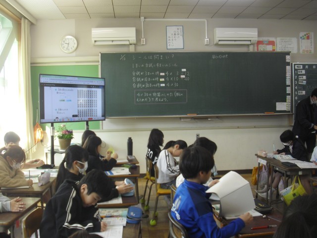 算数の授業です。4×30の計算の仕方を考えています。多様な考え方を発表しています。
