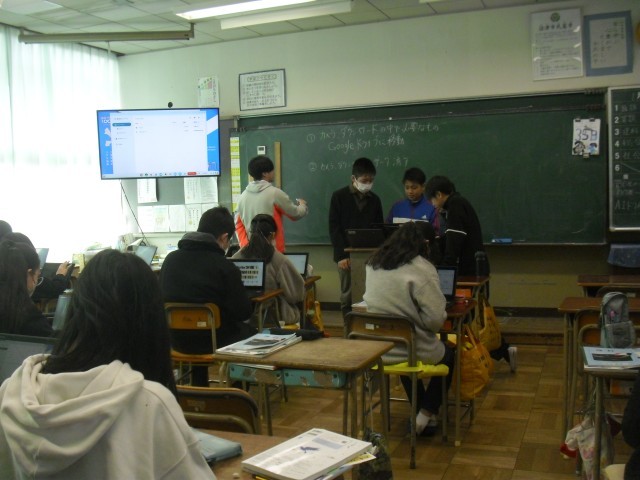 学活の授業です。6年間お世話になったクロームブックのデータの処理をしています。自分の学びの軌跡を振り返っています。