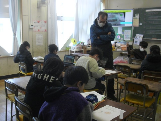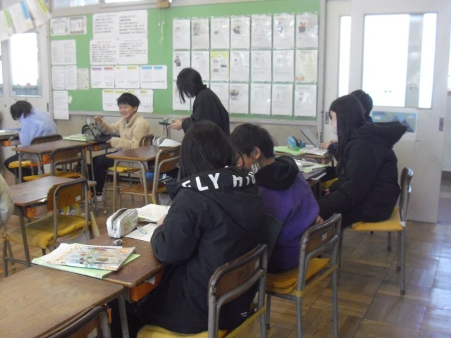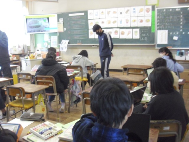 言語英語の授業です。友だちと一緒にランチメニューを考えています。どんなメニューになるか楽しみですね。